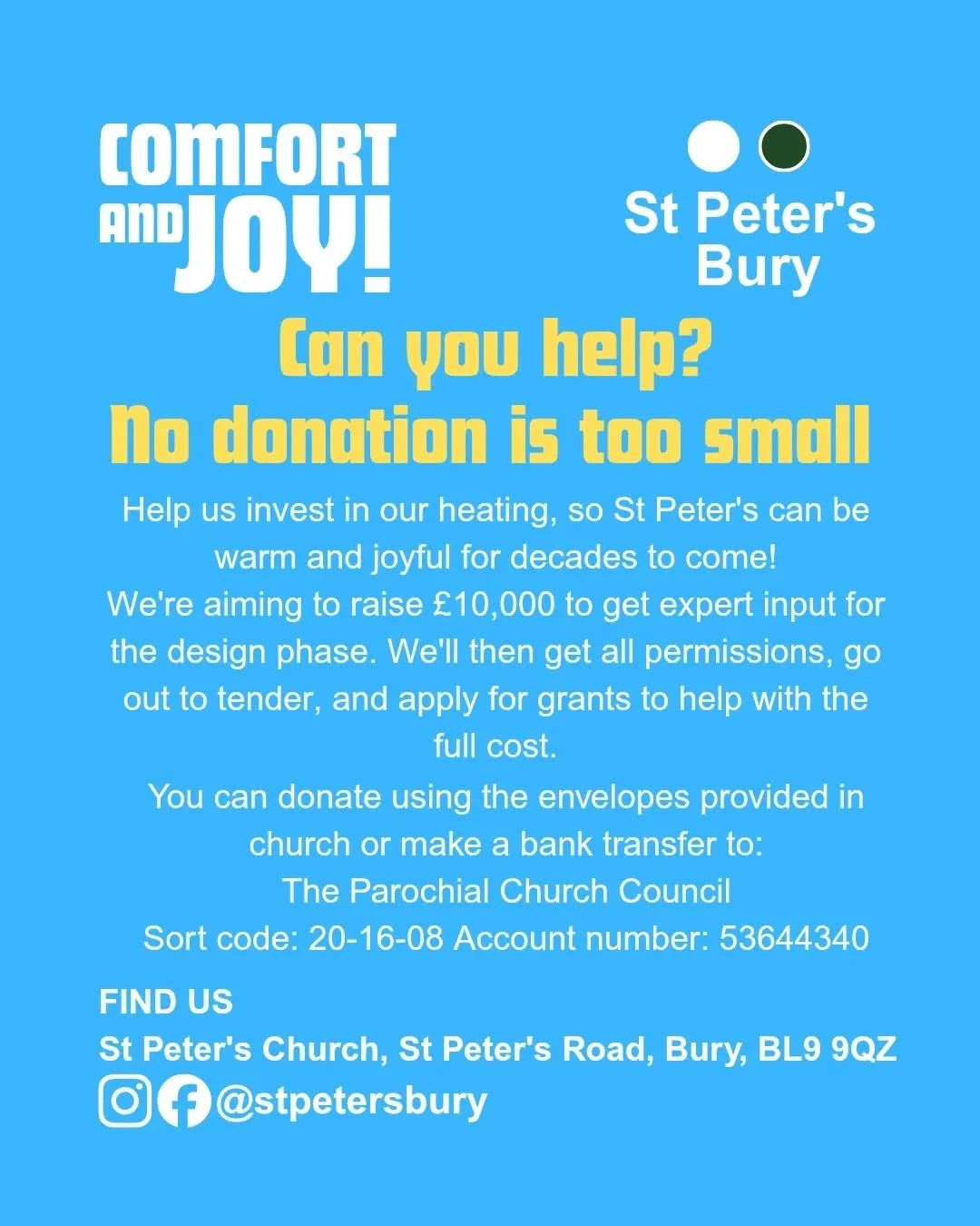 Alpha runs over 9 weeks - everyone’s welcome and there’s no pressure or charge. Each session takes place from 7pm at St Peter’s Church (BL9 9QZ) and there’ll be other people with questions just like yours. The evening includes refreshments, a short thought provoking talk, followed by an open discussion, where you can share your thoughts in groups.